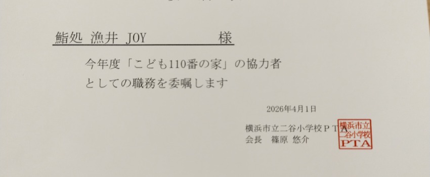 鮨処漁井JOYは、こども110番の家に委嘱されました。地域のこどもの安全に貢献します。 何か困ったことや怖いことが、あったら遠慮なくお立ち寄りください。 |